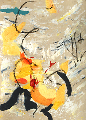„Das Auftragen der Farbe geschieht als Dialog mit der Stimmung des Inneren, ich höre darauf, was Pinsel, Spachtel und Bewegung mir eingeben.“