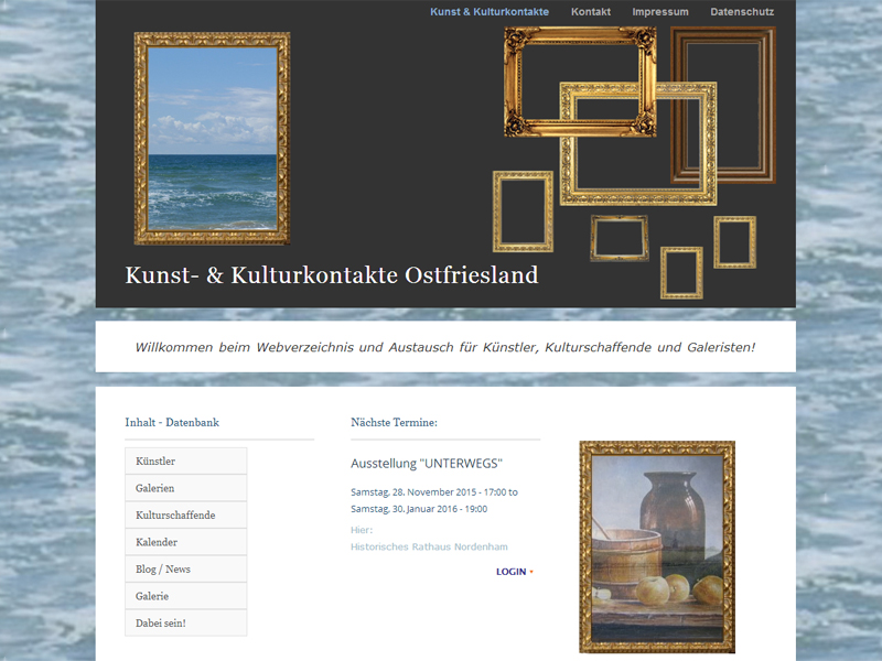 Unser www.kunst-kulturkontakte-ostfriesland.de hat ein neues Kleid bekommen und ging heute damit online. Ich hoffe es gefällt! :-)