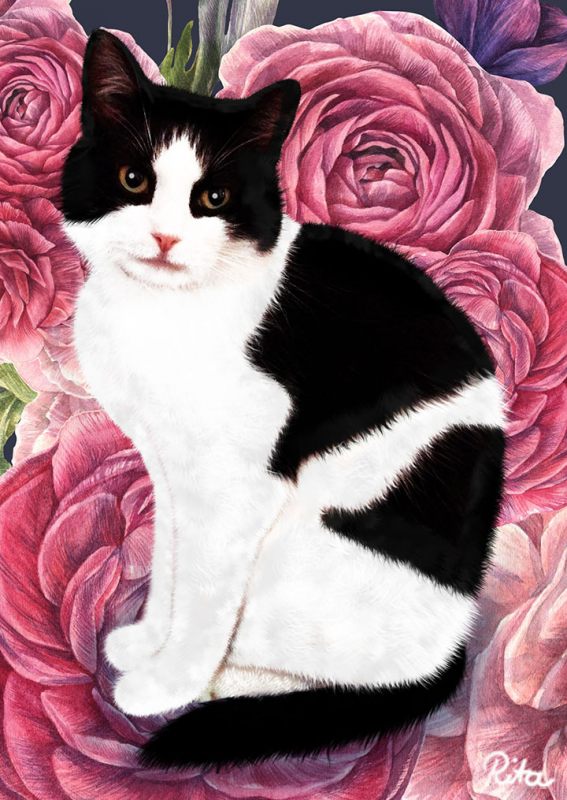 Composing aus 2 Katzenfotos und farbenfroher Hintergrundgrafik, Rita Gil Brand 2020