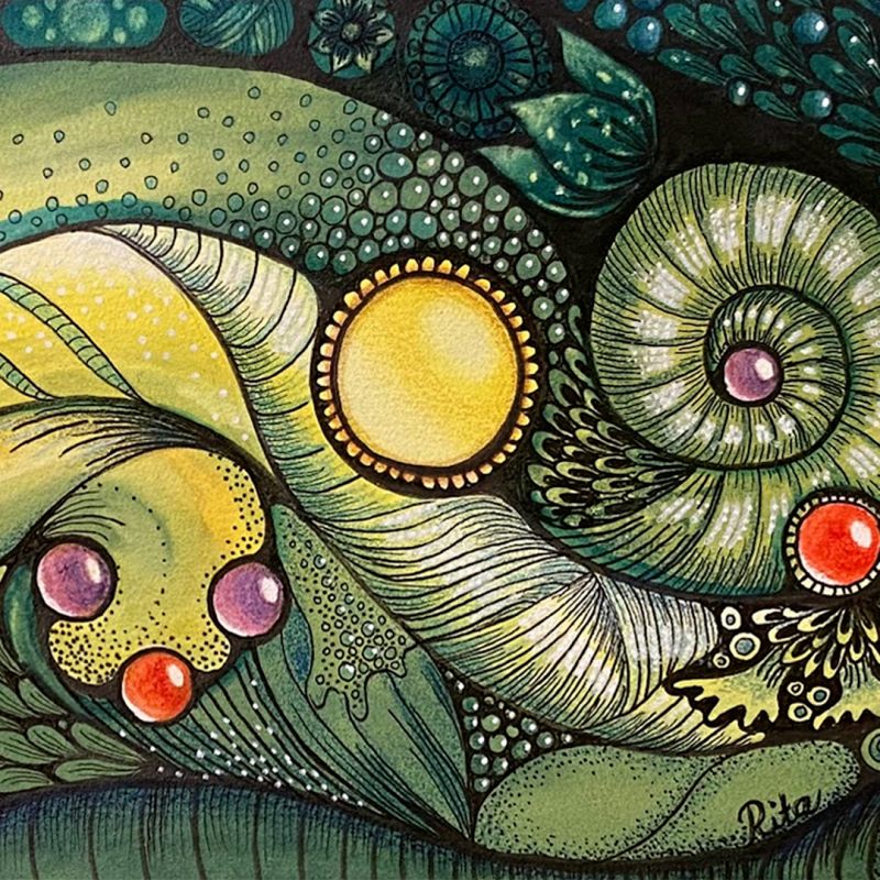 Aquarellfarben u. Farbstifte auf Büttenpapier, 40 x 15 cm, Januar '26, von Rita Gil Brand
